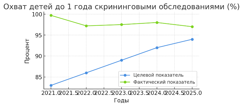 Так, при целевом уровне 5,8 случаев младенческой смертности на тысячу новорождённых фактический показатель за 2025 год составил 6,9.