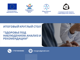 Приглашаем принять участие в итоговом круглом столе проекта «Здоровье под наблюдением: анализ и рекомендации», реализуемого ОЮЛ "Ассоциация "Гражданский альянс Павлодарской области" совместно с ОФ "Информационно-ресурсный центр" при поддержке Европейского союза.